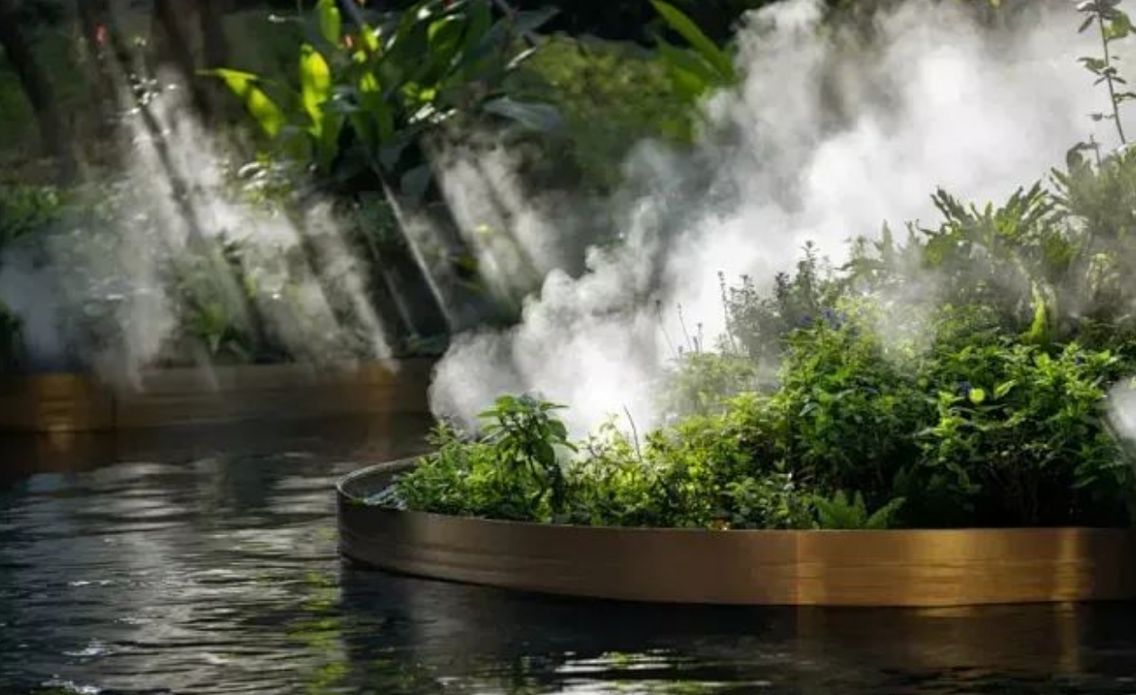 小型水景?:水景如迷你小溪、循環水系等可以為花園增添動態美,水面倒影與周圍景致交相輝映,營造出寧靜而祥和的氛圍?。小妙招是可以采購一個超聲波的造霧器,仙氣飄飄的水景為花園增加夢幻的靈動性。