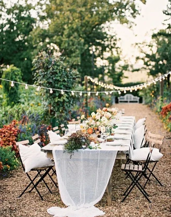 戶外家具:卡座和長桌等設施不僅提供了休憩場所,還能增強社交互動,使花園成為一個理想的聚會和放松空間?。這時不僅要有舒適的戶外家具來休息駐足,還要用漂亮的桌布、桌旗、精致的創意藝術茶具、餐具增加氛圍感。青島庭院設計