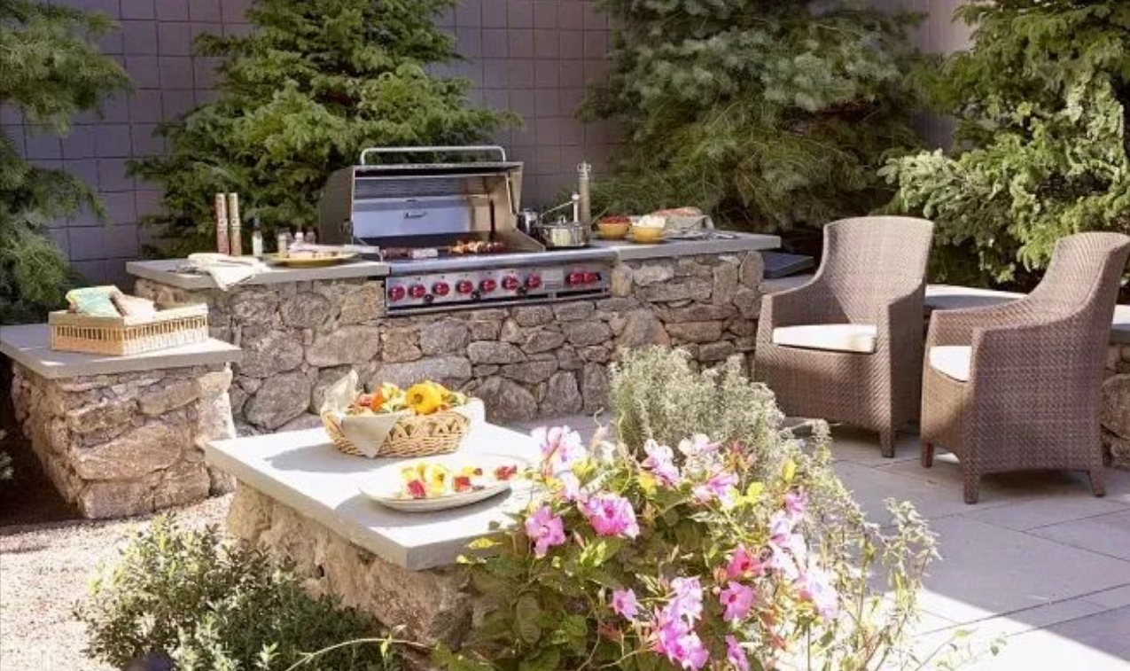 高品質的室外家具?:選擇合適的家具(如嵌入式的燒烤爐、溫潤的柚木桌椅)可以提升花園的整體品質和使用體驗?。青島別墅庭院設計