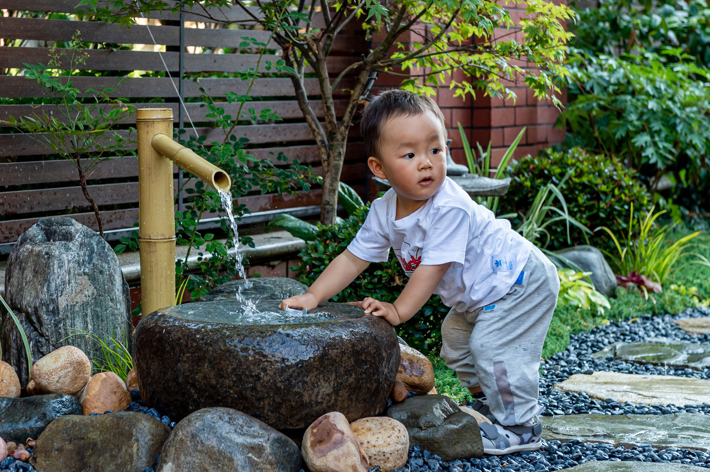 轉(zhuǎn)角處的南院以日式水缽、石燈、自然汀步等元素打造日式自然景觀,讓原本荒棄的角落重新煥發(fā)生機。日本紅楓、耐冬、大葉吳風(fēng)草、礬根、杜鵑球等植物營造富有四季變化的綠化組合。在植物和光影的交織中漫步花園,感悟自然和生活的美好。