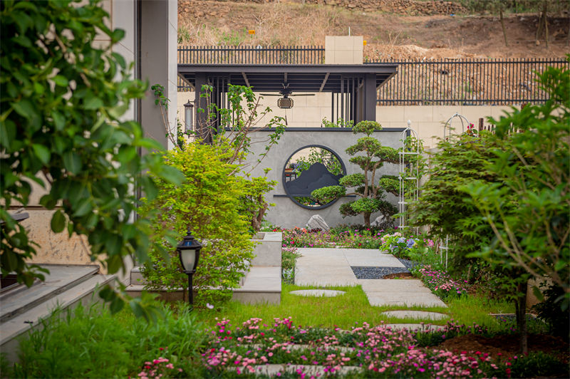 屬性:庭院實景案例 庭院面積:200㎡以下 庭院設計風格:新中式