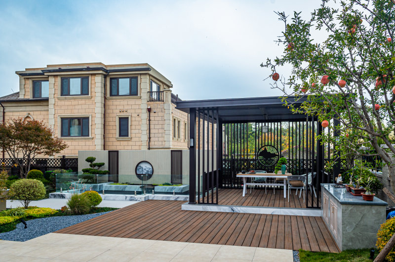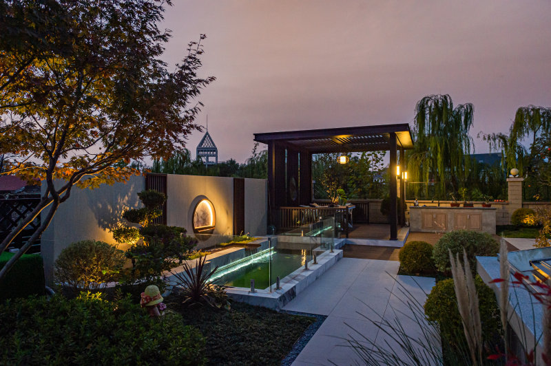 屬性:庭院實景案例 庭院面積:200-500㎡ 庭院設計風格:新中式