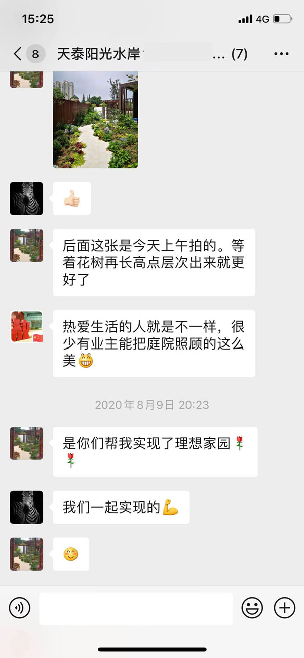 客戶的認(rèn)可,是對(duì)我們工作莫大的鼓舞 來(lái)源: 點(diǎn)擊次數(shù):3690 發(fā)布時(shí)間:2020/8/10 15:04:03 客戶的認(rèn)可,是對(duì)我們工作莫大的鼓舞。打造美好花園,筑就幸福生活。歡迎來(lái)蘭亭景觀體驗(yàn)我們不一樣的服務(wù)。