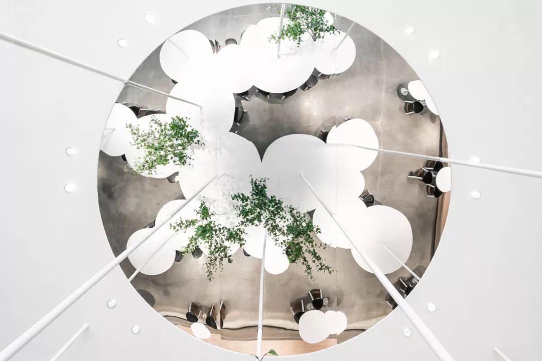 把19種不同尺寸的小桌子拼成一張大桌,跳脫出封閉,大桌子縮短了不同群體之間的距離,為他們的互動提供了可能。讓每個消費者每次進店都能收獲不同的空間體驗感。