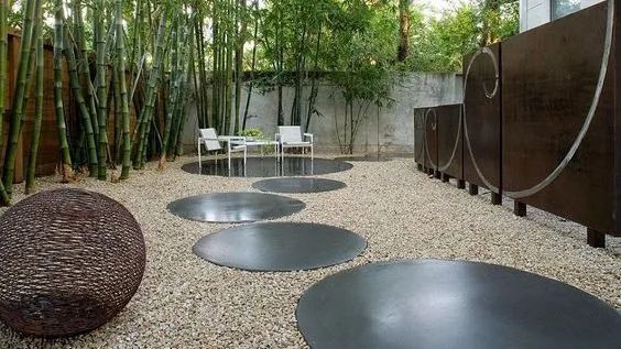 現代汀步的形式已經不止局限于傳統的自然形態了,各種形式和材質都有了更多的選擇。有方形的、圓形亦或是橢圓形的;有石材、木材和金屬等。青島庭院設計